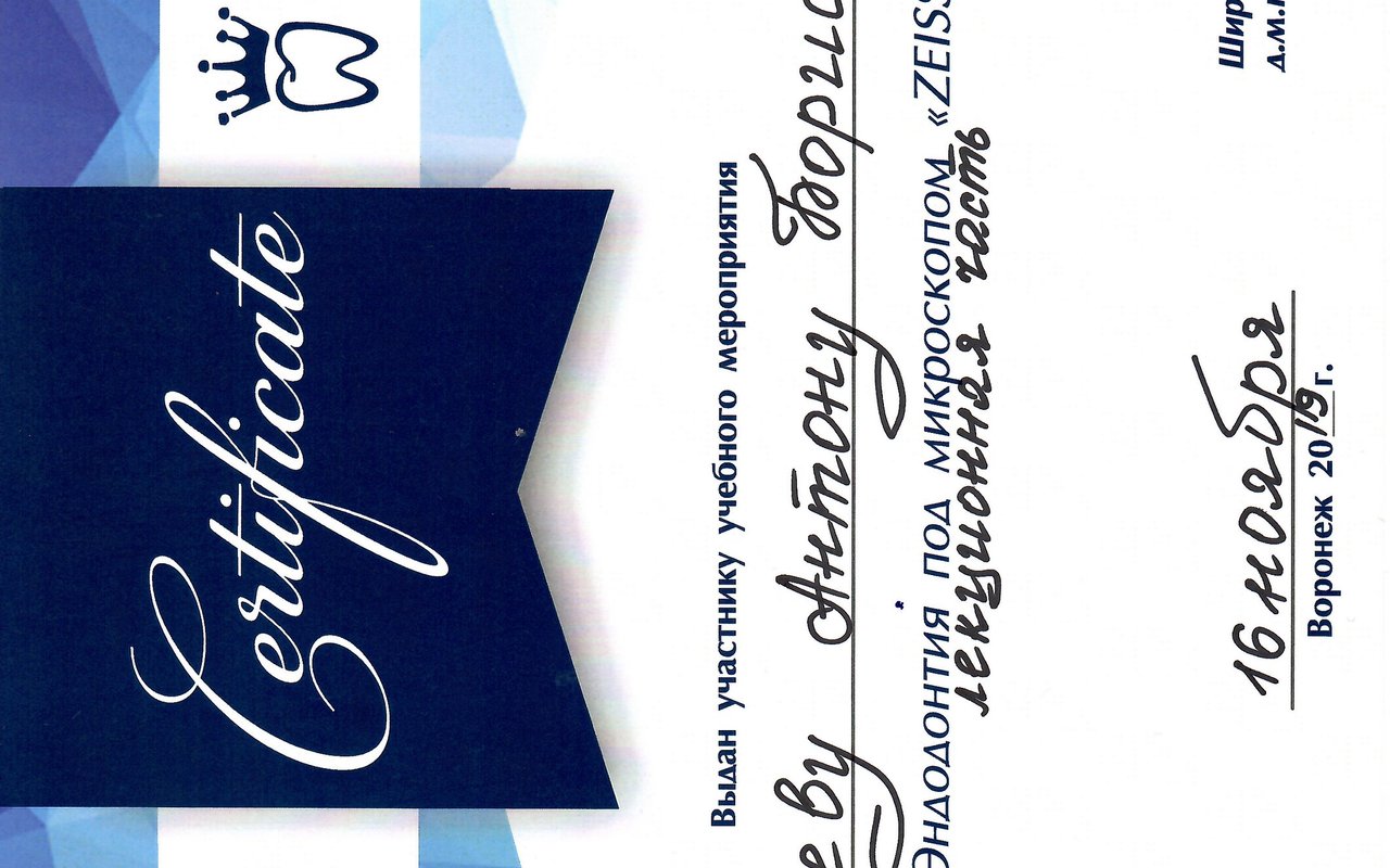 2019 — Воронежский Государственный Медицинский Университет им. Н.Н. Бурденко (стоматология хирургическая)