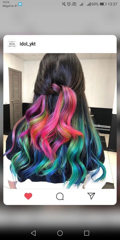 Капсульная техника цветных прядей. Стоимость зависит от длины волос.