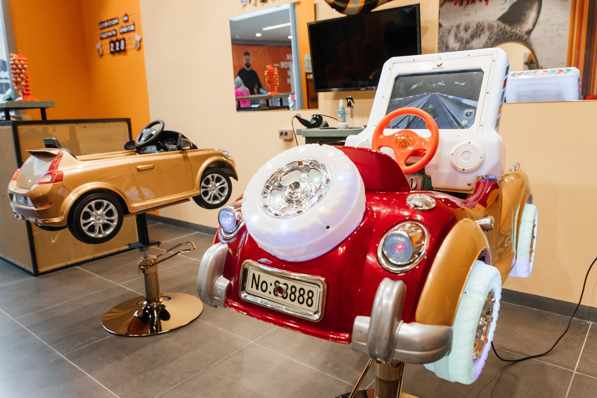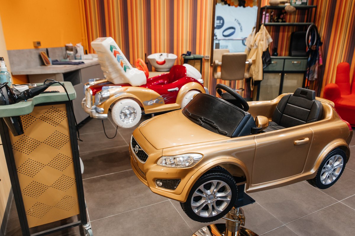 Заботливые мастера, океан разнообразных игрушек, вместо кресел — машинки, вместо зеркал — телевизоры с любимыми мультиками. За множеством развлечений процесс самой стрижки у ребёнка пролетает абсолютно незаметно.