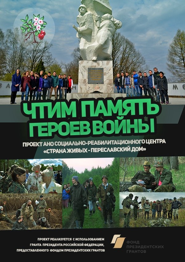 Автономная некоммерческая организация социально-реабилитационный центр «Страна живых — Переславский дом» при поддержке Фонда президентских грантов реализует проект «Чтим память героев войны». Обращаясь к истории нашей страны и конкретных семей, он направлен на формирование новых жизненных принципов и ценностных ориентиров у зависимых людей.