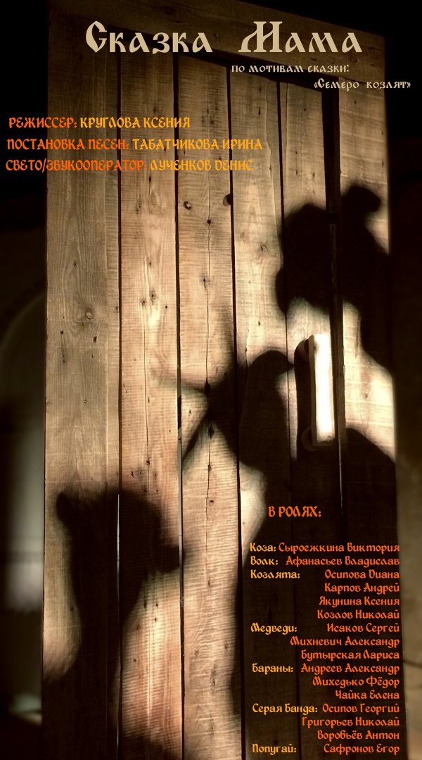тфильм и фильм Щелкунчик, после чего был написан наш сценарий, ориентированный на нас и нашего зрителя, нашим сценаристом Ксюшей были распределены основные роли. Осталось несколько второстепенных ролей, которые распределялись по желанию. Одна их них – роль мамы Мари и Марка. Почему я захотела играть эту роль?! Может потому что в жизни являюсь мамой двоих детей, может от того что хотела попробовать себя на сцене, может просто хотела быть с ребятами и делать общее дело а может и все сразу. И не пожалела ни разу! Хотя было тяжело, сложно и многое не получалось. Но как же это увлекательно и интересно! Наш режиссер и сценарист Ксюша Круглова находила индивидуальный подход к каждому, а мы все очень непростые и во многом зажатые ребята. Каждого героя она как будто вырисовывала, детально, тщательно, каким он должен быть. Мы не играли наших героев, мы ими жили. Мы жили на сцене в прямом и переносном смысле. Ксюша обожает театр, и она заряжает этой любовью всех. На сцене происходило реальное волшебство – была девушка Диана и вот она уже мечтательница Мари, был Юра, а вот он уже серьезный старший брат Марк, была Алина, а вот она уже королева крыс, был Андрей – вуаля, вместо него мы видим Щелкунчика. Некоторые роли настолько были живыми, что, например, Максим игравший волшебника Дюссельмейра у меня до сих пор ассоциируется именно с ним и хочется называть его именно так. Сколько было репетиций невозможно сосчитать. Но это стоило того что на показе даже самые маленькие зрители сидели, затаив дыхание и смотрели на нас. А потом хлопали нам искренне и от всей души. Мы не только создавали и дарили сказку, мы сами побывали в ней! Мы научились танцевать вальс – это невероятно, но факт. Менее чем за 2 недели мы действительно танцевали. А танец игрушек это что-то невероятное! Спасибо терпению и веру в нас нашему педагогу!