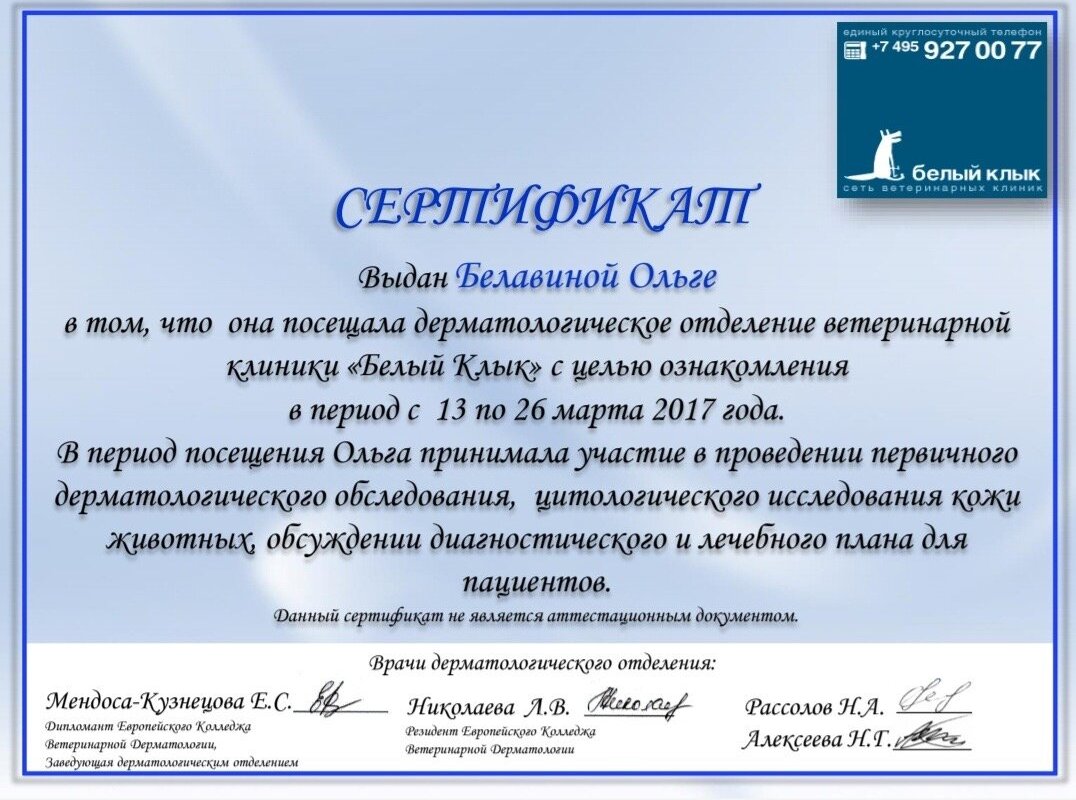 Отзывы о ветеринаре Ольге Васильевне Белавиной