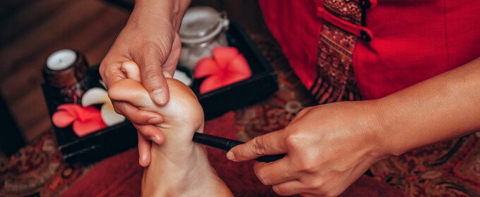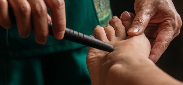 Смеси из тайских трав набивают в небольшие тканевые узелки, нагревают на пару, а затем прикладывают ...